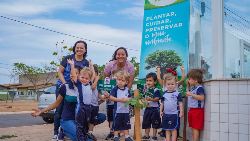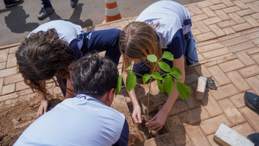 Os alunos do Colégio, localizado no bairro Jardim Paraíso, realizaram o plantio de 21 mudas nativas do Cerrado no entorno da unidade. Na Cooperfarms, a equipe Técnica da Secretaria de Sustentabilidade falou da importância das árvores para a preservação do solo e das nascentes, para as crianças atendidas pelo projeto social da entidade.