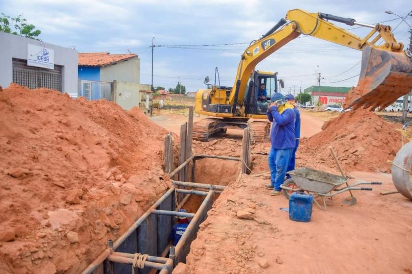Com 40% concluída, obra de esgotamento sanitário das Acácias é surpreendida por chuvas