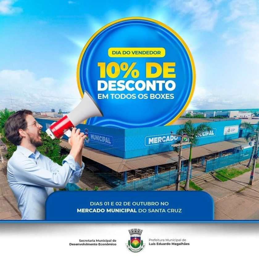 Em comemoração ao Dia do Vendedor, todos os boxes do Mercado Municipal do bairro Santa Cruz, em Luís Eduardo Magalhães estão oferecendo descontos de 10%, nos dias 01 e 02 de outubro.
