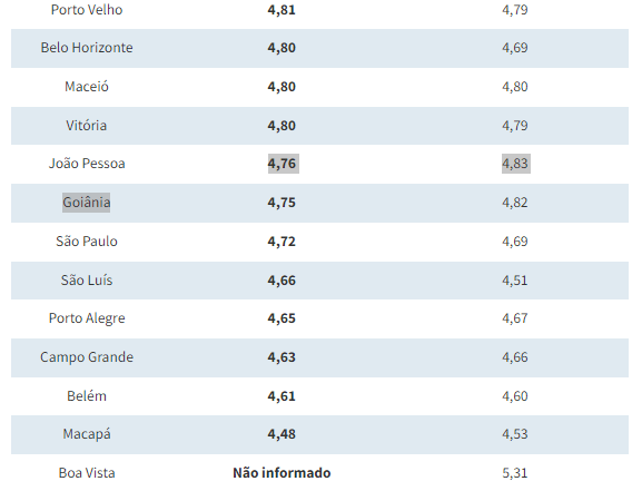 Na cidade de São Paulo, o valor médio da gasolina foi de R$ 4,72. Em uma semana, o preço médio do litro da gasolina em Salvador subiu R$ 0,52, (+10,3%). O menor valor encontrado foi R$ 5,44, e o mais alto, R$ 5,59.