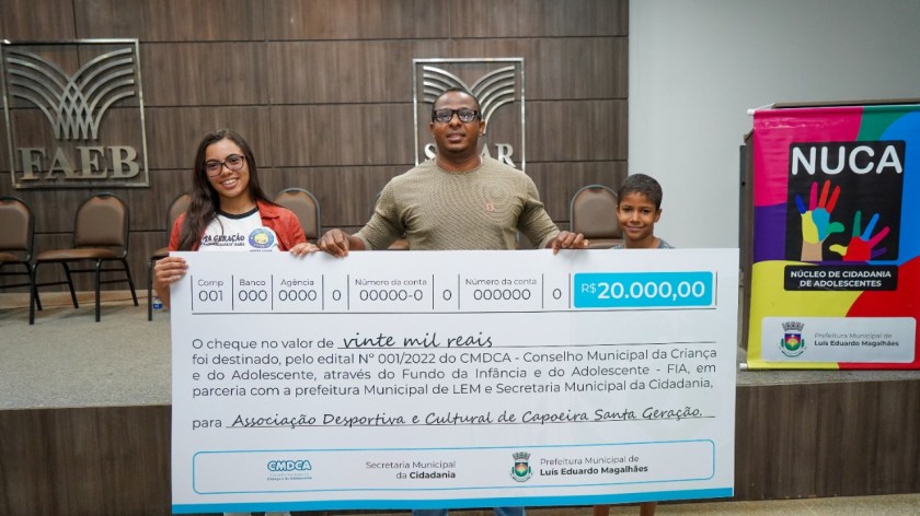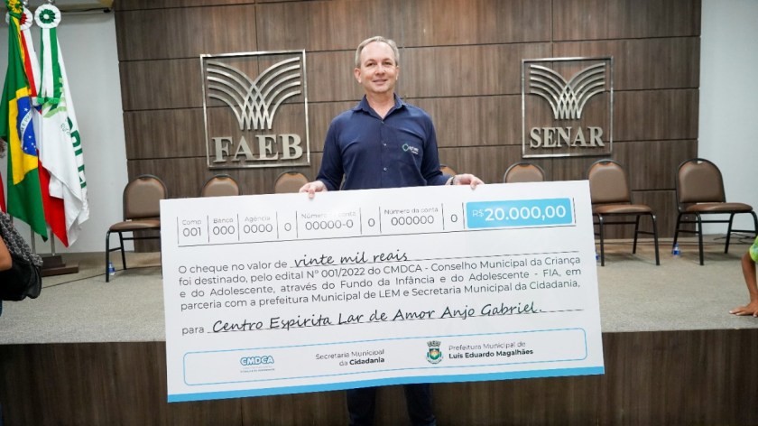 O Centro Espírita Lar de Amor Anjo Gabriel; a Associação Desportiva e Cultural Santa Geração; a Associação de Pais e Amigos dos Excepcionais (APAE-LEM); a Associação dos Moradores do Aracruz (AMA) e a Associação Beneficiente Cristã Mão Amiga receberam o cheque simbólico no valor de R$ 20 mil cada. Os recursos foram captados pelo Fundo Municipal da Criança e do Adolescente (FMDCA).