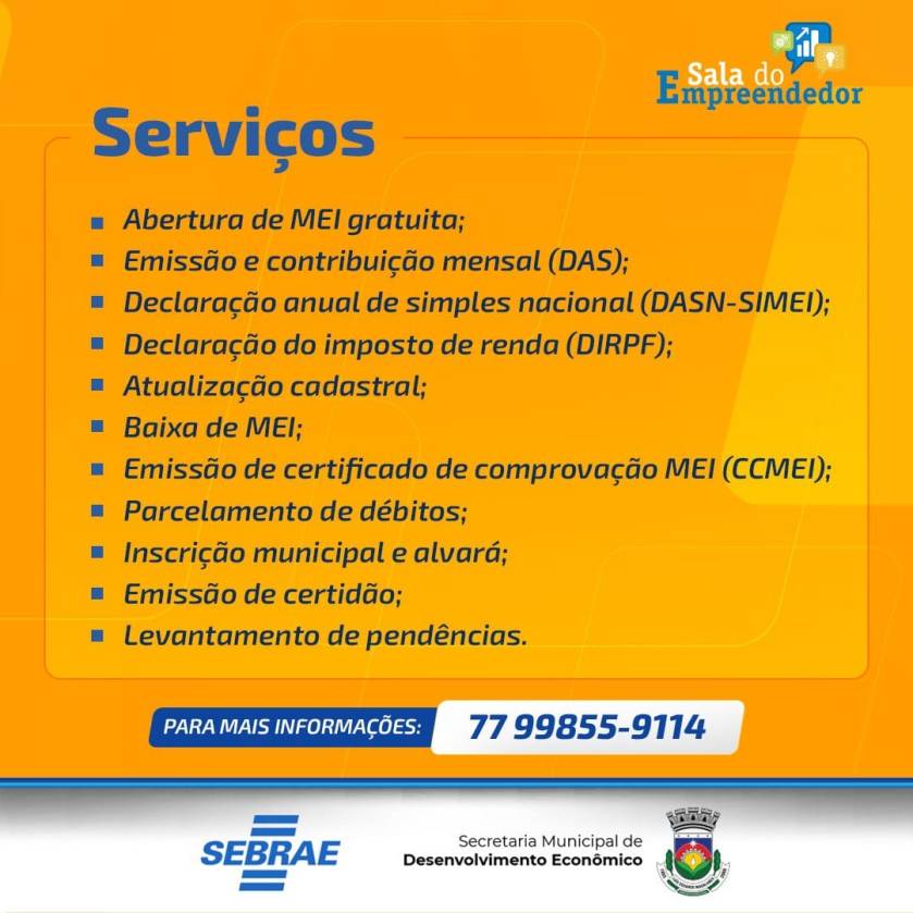 A Sala do Empreendedor, que funciona na sede da Secretaria Municipal de Desenvolvimento Econômico de Luís Eduardo Magalhães, oferece uma série de serviços aos empresários e empreendedores do município, simplificando os processos e garantindo atendimento ágil e de qualidade.