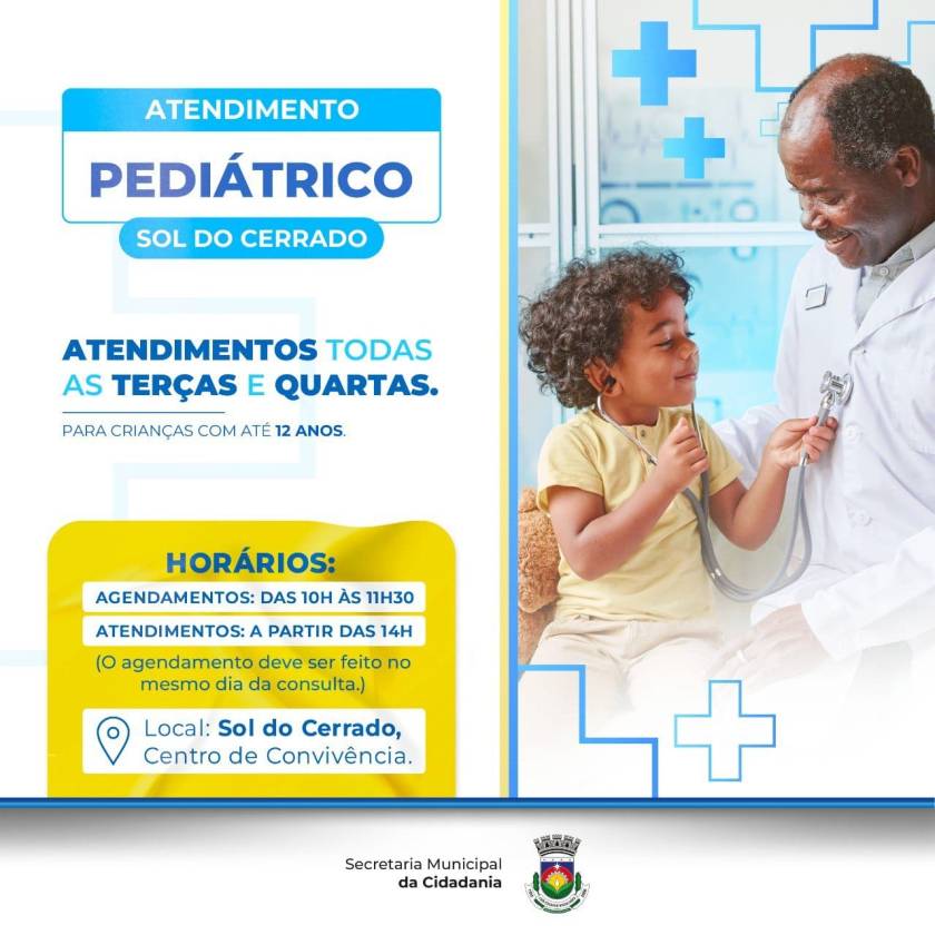 Luís Eduardo: continuam os atendimentos pediátricos toda terça e quarta no Sol do Cerrado