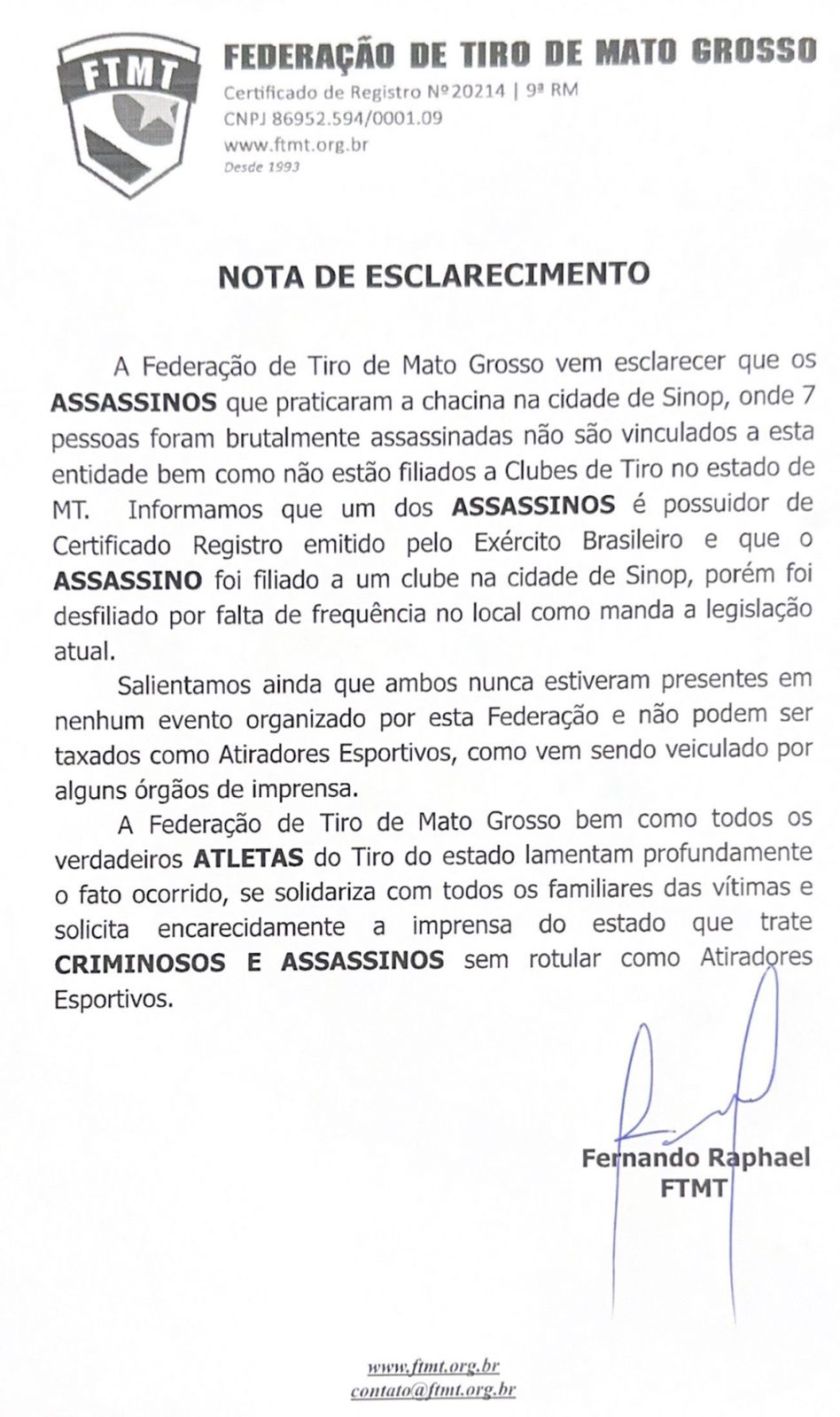 Dois jogadores, insatisfeitos por perder no jogo de sinuca, EXECUTARAM SETE pessoas, entre elas, Larissa de 12anos, que foi morta pelas costas. Aconteceu em Sinop, Mato Grosso. O suspeito tem registro de CAC, filiado em um clube de tiros, em Alta Floresta.