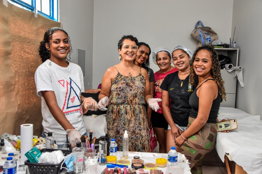 Desde às 8h da manhã, 15 profissionais disponibilizaram seus serviços de corte de cabelo, limpeza de pele, maquiagem, escova, manicure e pedicure, entre outros.