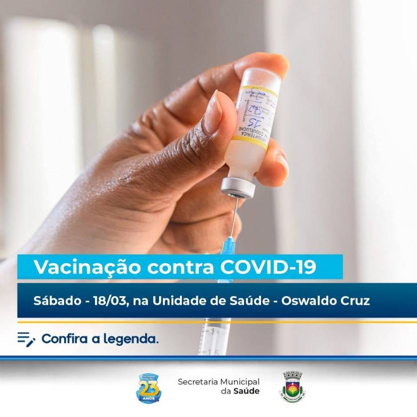 Vacinação contra Covid-19 estará disponível neste sábado (18), na unidade de saúde Oswaldo Cruz.