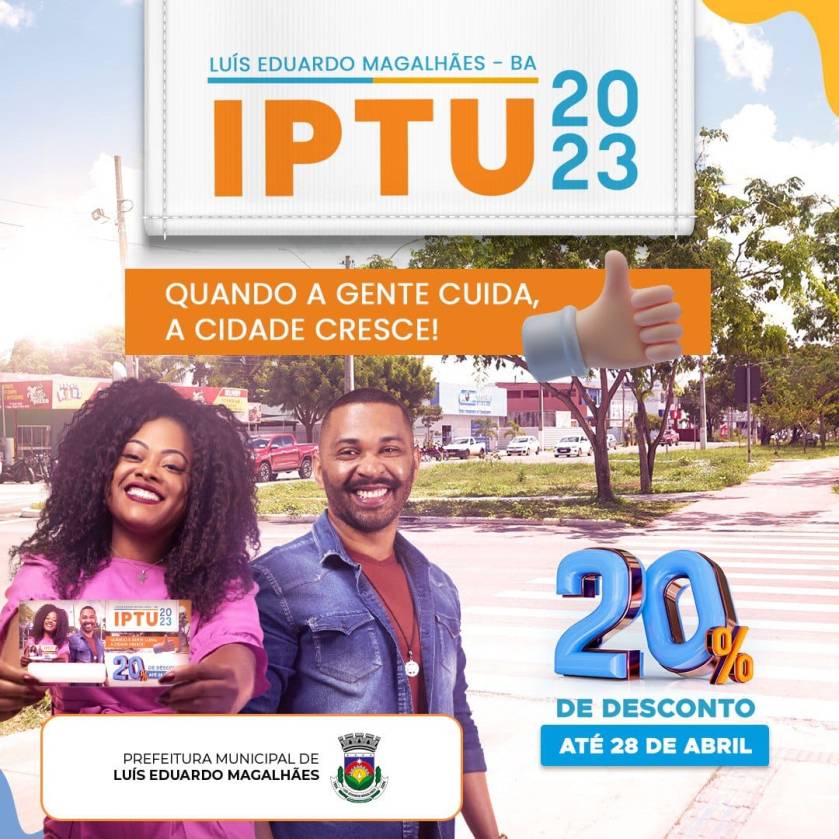 Os contribuintes de Luís Eduardo Magalhães podem pagar o IPTU 2023 em parcela única, com desconto de 20% sobre o valor devido, até o dia 28 de abril.