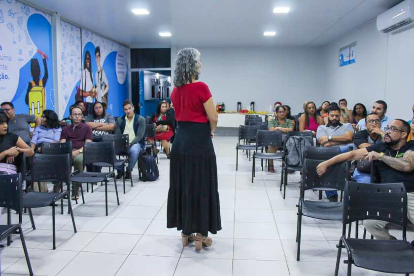 A coordenadora Pedagógica da EJA no município, Luciana Costa, falou da importância da capacitação.