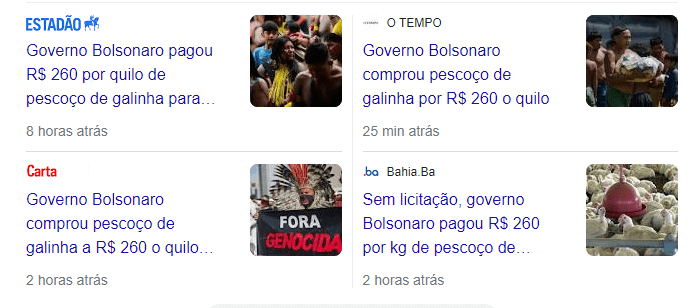 O governo do ex-presidente Pata Seca comprou, no ano passado, pescoço de galinha superfaturado para indígenas na Amazônia, por R$ 260 o quilo.