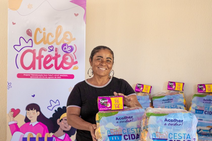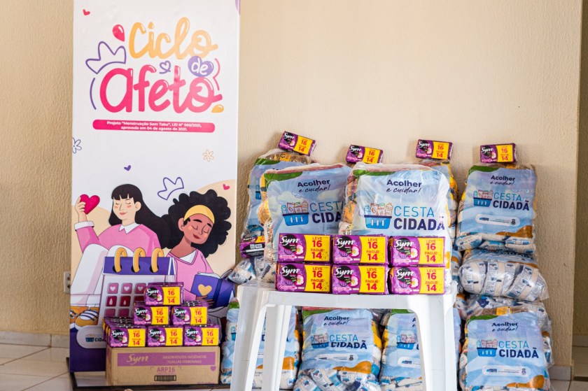 Uma novidade. Neste mês, a Cesta Cidadã recebeu o adicional dos pacotes de absorventes do Ciclo de Afeto, projeto Municipal que visa amenizar a pobreza menstrual entre a população do município.
