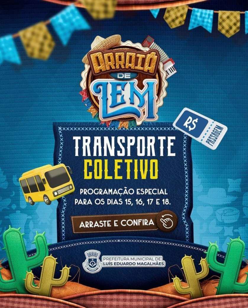 A Prefeitura de Luís Eduardo Magalhães, através da Secretaria Municipal de Segurança e Trânsito e da Superintendência de Trânsito e Transporte (SUTRANS), divulgou o esquema especial de transporte para o maior São João do Oeste da Bahia, o Arraiá de LEM (15,16,17 e 18 de junho).
