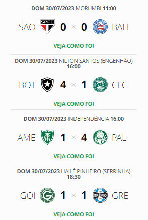 Outros resultados deste domingo no Brasileirão: