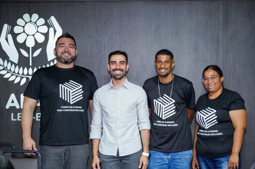 O presidente da APAE-LEM, Jefferson Motta, o prefeito de Luís Eduardo Magalhães, Junior Marabá, Lucas da Silva e Kelma Santos.