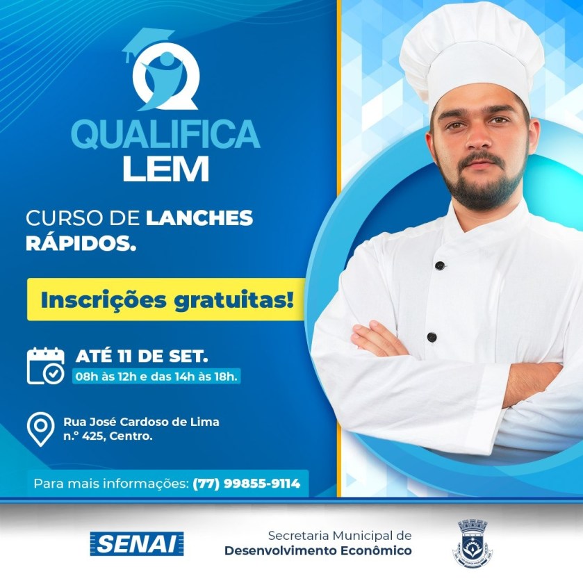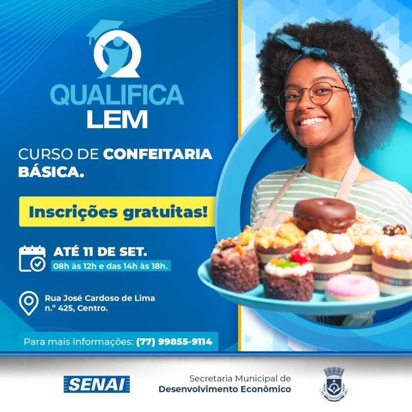 A Prefeitura de Luís Eduardo Magalhães, através da Secretaria de Desenvolvimento Econômico, está com as inscrições abertas até o próximo dia 11, para o Programa Qualifica LEM, desta vez para os cursos gratuitos de Confeitaria Básica e Lanches Rápidos. São 23 vagas para cada curso.
