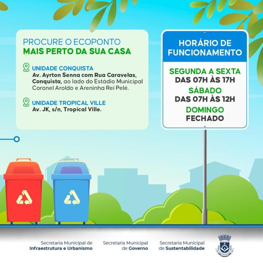 O Ecoponto veio para trazer mais facilidade aos pequenos geradores de resíduos que apresentam dificuldade em acessar o aterro sanitário, localizado a 18km do centro da cidade.