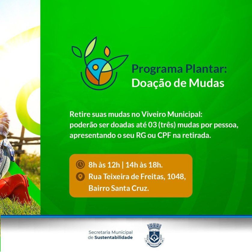 E a comunidade do município tem livre acesso às quatro mil mudas e pode tê-las em sua casa. Basta procurar o Viveiro, localizado na Rua Teixeira de Freitas, n°1048, no bairro Santa Cruz. Que funciona de segunda a sexta-feira, das 8h às 12h e das 14h às 18h.
