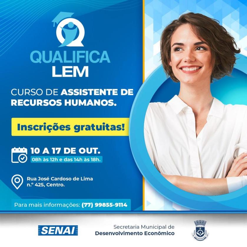 A Prefeitura de Luís Eduardo Magalhães, através da Secretaria de Desenvolvimento Econômico, está com as inscrições abertas de 10 a 17 de outubro, para o Programa Qualifica LEM, para o curso gratuito de Recursos Humanos.