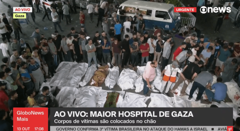 A Globo colocando seus comentaristas pra convencer a população de que “cessar fogo favorece os terroristas” e que a única saída é o “extermínio” desnuda o cinismo do discurso pseudo-pacifista usado contra a Rússia até uma semana atrás.