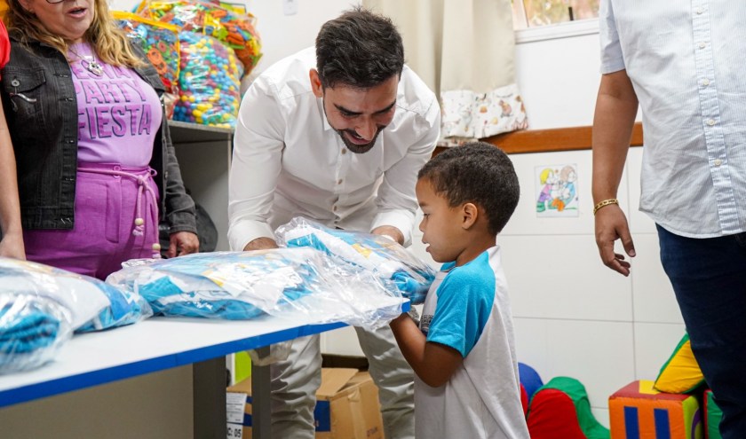 “No social, a fim de igualar o processo de aprendizagem nós doamos, desde 2022, para os mais de 21 mil alunos um kit de uniforme escolar, com calça, camisa, short e moletom. E para que todos tenham o mesmo material escolar doamos também um kit com mais 20 itens”, disse o prefeito Junior. Foram ao todo, 115 mil peças de uniforme, um total de R$ 3,5 milhões.