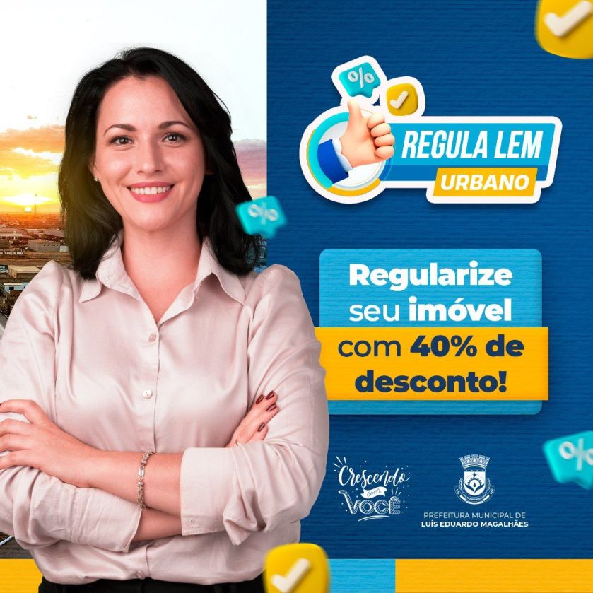 A Prefeitura de Luís Eduardo Magalhães está oferecendo uma oportunidade especial aos proprietários de imóveis na área urbana da cidade, para regularizarem seu patrimônio imóvel com 40% de desconto no ITIV (Imposto Sobre a Transmissão “Intervivos” de Bens Imóveis e de Direitos Reais), através do REGULA LEM URBANO.