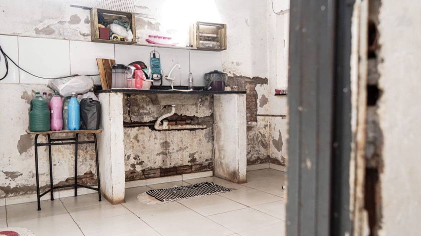 Dona Maria contou como era a casa antes da reforma. “O esgoto do banheiro não funcionava, então a água tava voltando e a parede estava toda úmida, a ponto de todo mundo que olhava, dizer que estava arriscado de ceder. No restante da casa o piso estava muito estragado, não tinha rodapé, as paredes estavam todas rachadas”.