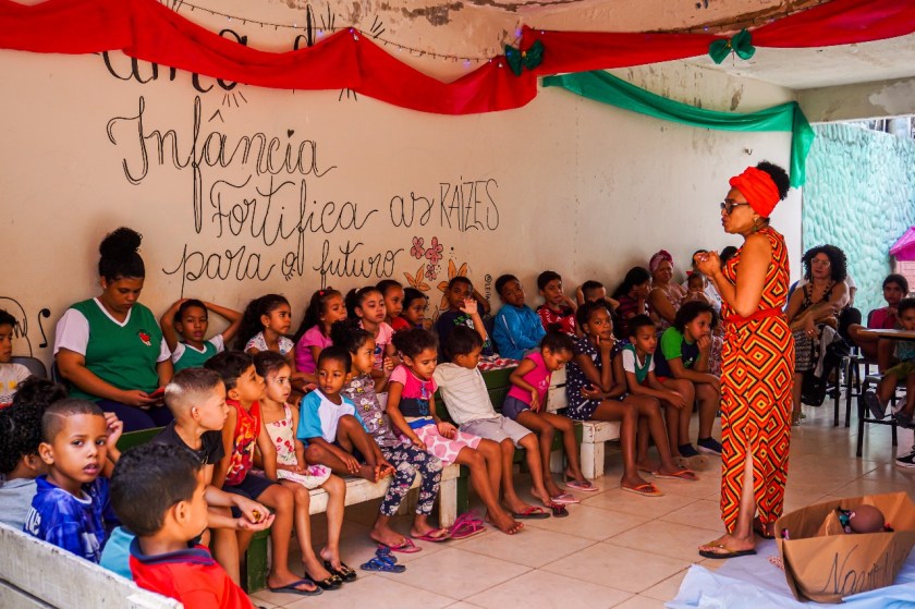 As crianças atendidas pelo Projeto Coração de Mãe, em Luís Eduardo Magalhães, tiveram uma manhã diferente nesta segunda-feira (20), Dia da Consciência Negra. Em ação promovida pela Secretaria Municipal da Cidadania, eles ouviram histórias sobre a luta do povo negro por igualdade e respeito.