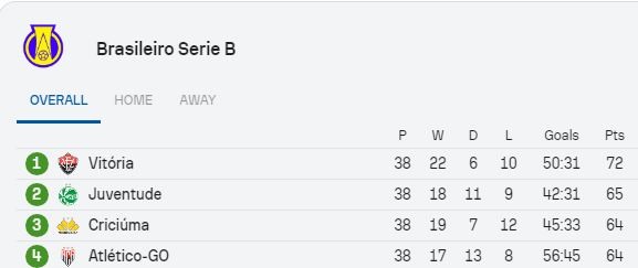 Juventude e Atlético-GO se juntaram a Vitória e Criciúma, que já haviam garantido o acesso à elite do futebol brasileiro.