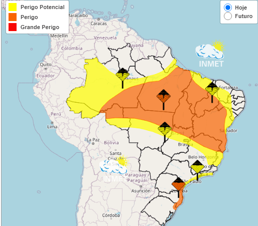 Bahia e Centro do Brasil em alerta para chuvas fortes. No Sul, trombas d’água.