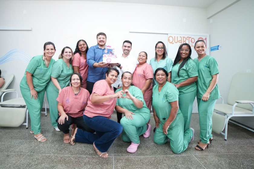 O prefeito Junior Marabá comemora com a equipe do CPN, a marca de 300 nascimentos na unidade de saúde.
