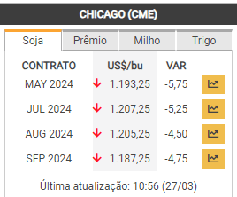 Soja caía em todos os vencimentos, nesta manhã, em Chicago.