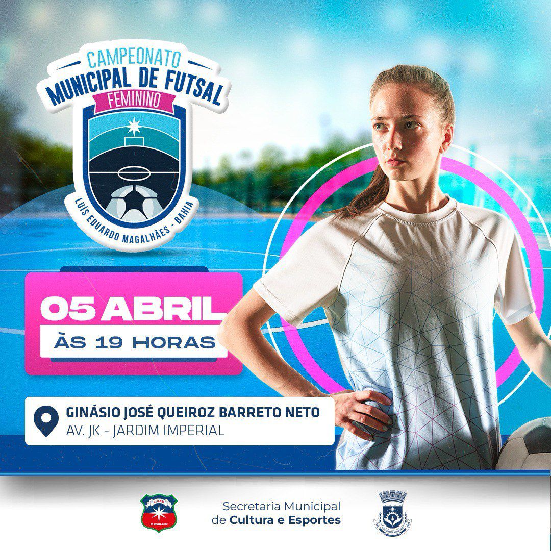 Os campeonatos Municipais Feminino, Série Prata e Ouro de Futsal de Luís Eduardo Magalhães iniciam hoje (05), a partir das 19h, no Ginásio José Queiroz Barreto Neto, na Avenida JK.