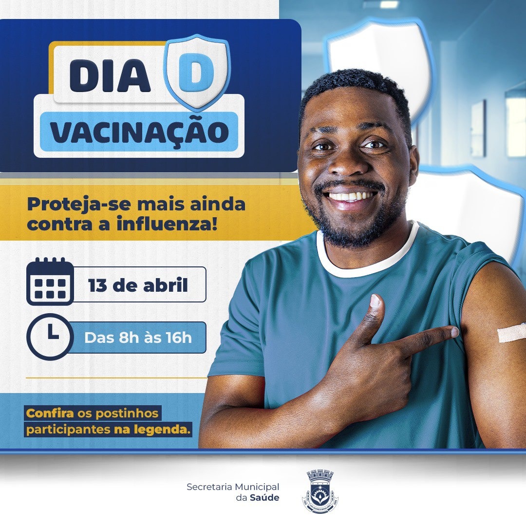 A Prefeitura de Luís Eduardo Magalhães realiza amanhã, dia 13 de abril, o “Dia D” da Campanha de Vacinação da Gripe/Influenza, das 8h às 16h, em todas as salas de vacinação do município. Para se imunizar, basta comparecer a uma unidade de saúde, portando um documento com foto e a comprovação de pertencimento ao grupo prioritário ao qual se enquadra.