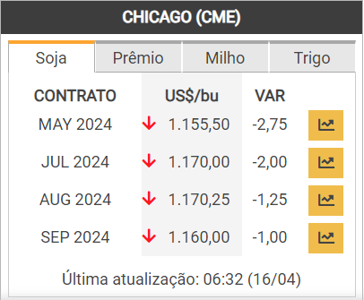 Os preços da soja em grão registraram uma alta no mercado interno, influenciada não apenas pela demanda externa, mas também por indicadores de menor produção nacional. Entre a primeira estimativa da Conab para a safra 2023/24, divulgada em outubro de 2023, e a mais recente, deste mês, houve um corte de 15,48 milhões de toneladas. Agora, a projeção é de 146,52 milhões de toneladas, representando uma redução de 5,2% em relação à safra anterior e 0,23% abaixo do previsto no último relatório, emitido em março.