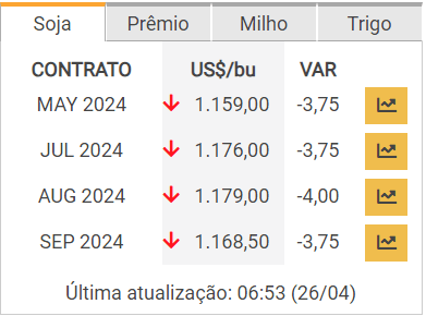 Em contrapartida, no Brasil, as exportações de soja são recorde para o mês de abril e também para o acumulado de 2024. De acordo com números da Secex (Secretaria de Comércio Exterior) reportados na última segunda-feira (25), as vendas brasileiras externas, somente neste mês, alcançam 10,209,3 milhões de toneladas, contra pouco mais de 14,3 milhões de todo abril de 2023. São ainda mais sete dias úteis a serem contabilizados, o que poderá garantir, pelo menos, um resultado semelhante ao de um ano atrás.