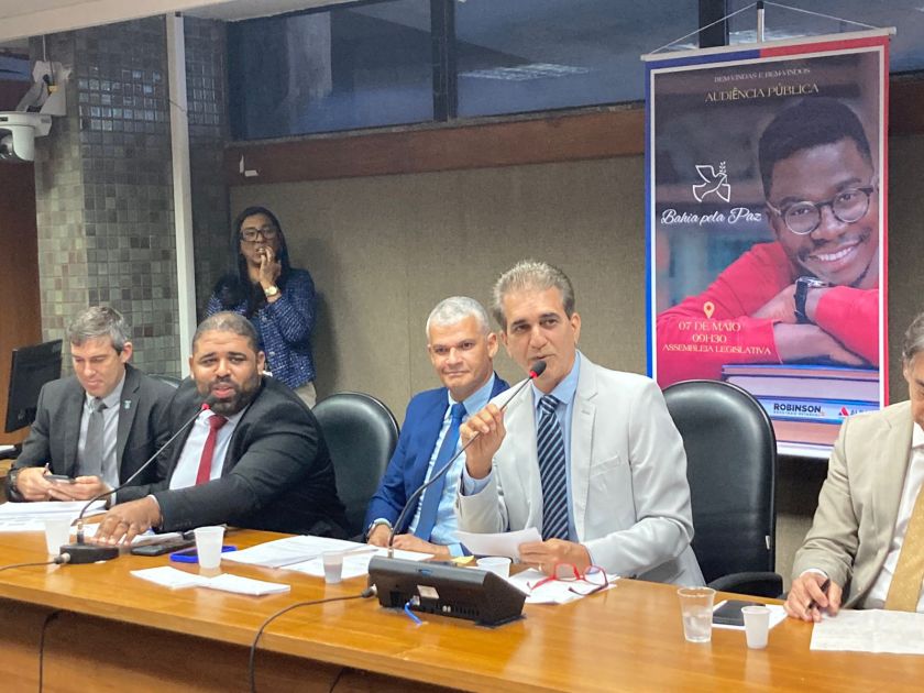 O líder da Federação Brasil da Esperança, deputado estadual Robinson Almeida (PT), destacou, durante audiência pública que propôs para discutir o projeto de lei do Programa Bahia pela Paz, elaborado pelo Governo do Estado, na Assembleia Legislativa da Bahia, que a política pública trabalhará além das ações de segurança pública, iniciativas coordenadas de prevenção social, com a integração de políticas de educação, cultura e esporte.