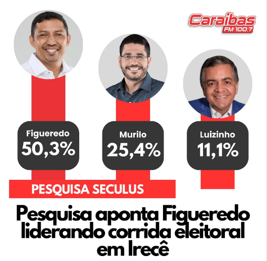 A primeira pesquisa eleitoral registrada com vistas às eleições municipais em Irecê aponta liderança de Figueredo, com Murilo Franca aparecendo em segundo e Luizinho Sobral ocupando a terceira posição.