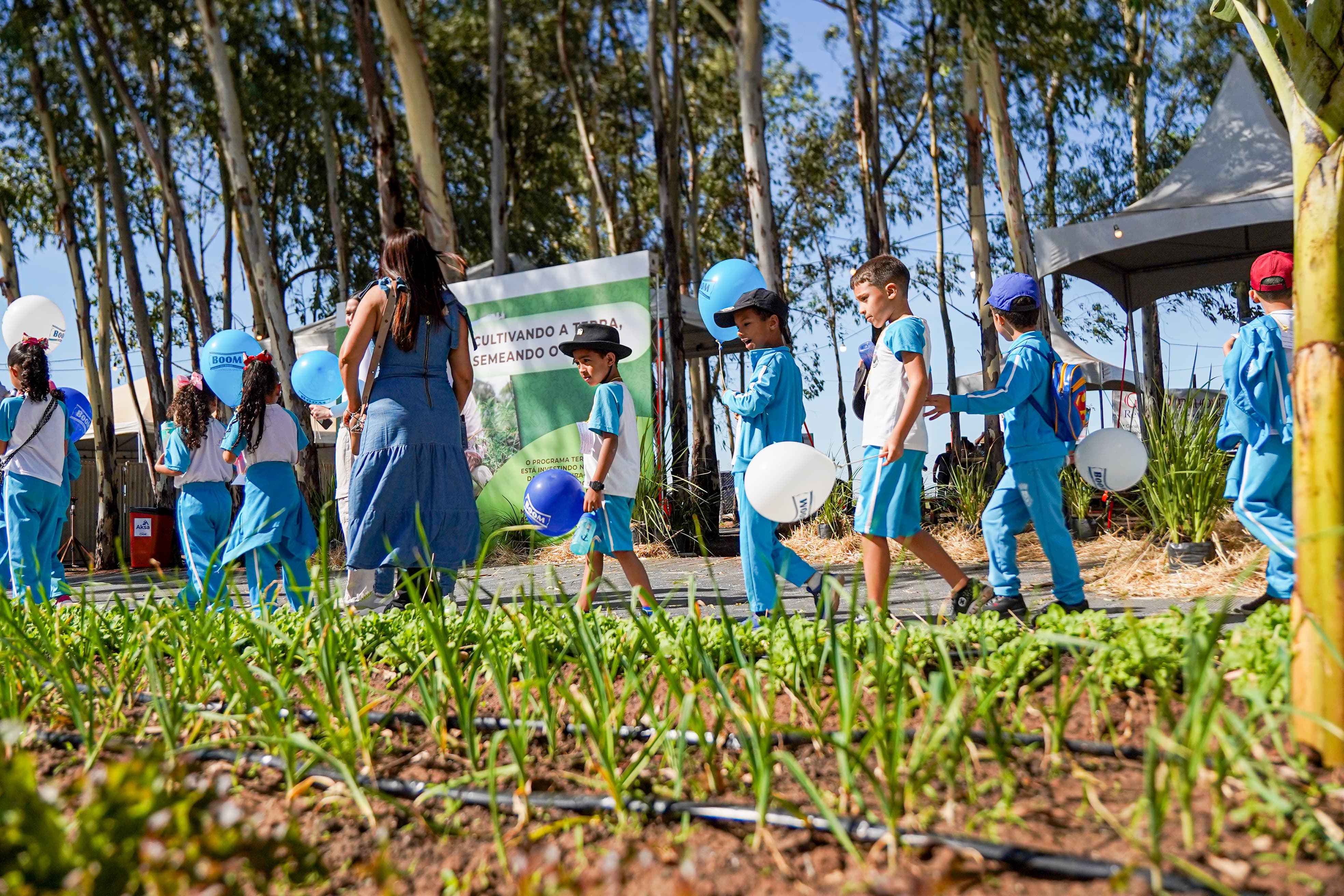 No estande do Programa Terra Gentil, em um espaço de 1.800 metros quadrados, os alunos interagiram com animais da fazendinha, conheceram a Horta Municipal e aprenderam sobre a importância do trabalho dos agricultores familiares do município.