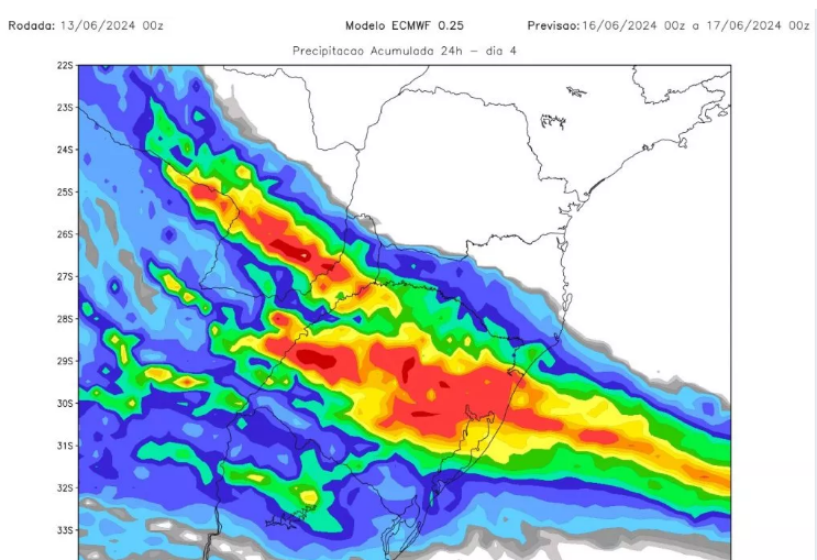 Além disso, segundo o instituto, os modelos indicam maiores acumulados de precipitação na metade Norte do RS e no Oeste de Santa Catarina nos próximos 10 dias, com a chuva podendo passar dos 200mm em alguns pontos.