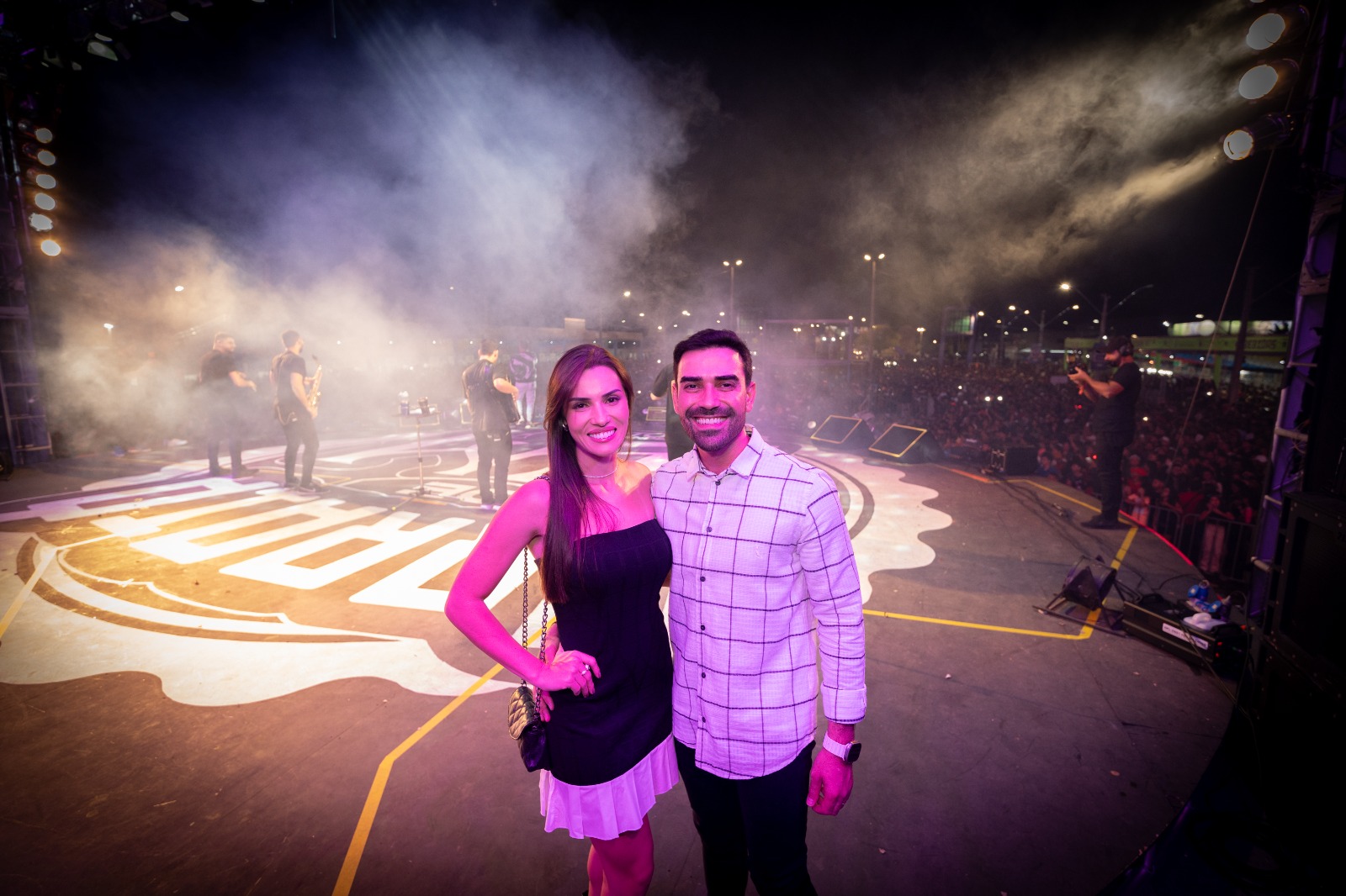 O Prefeito Júnior Marabá e a primeira dama Cynthia Borges, liderando a festa.