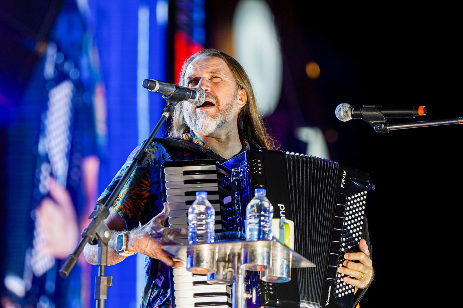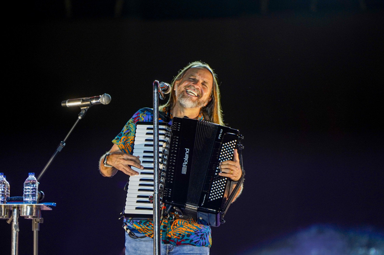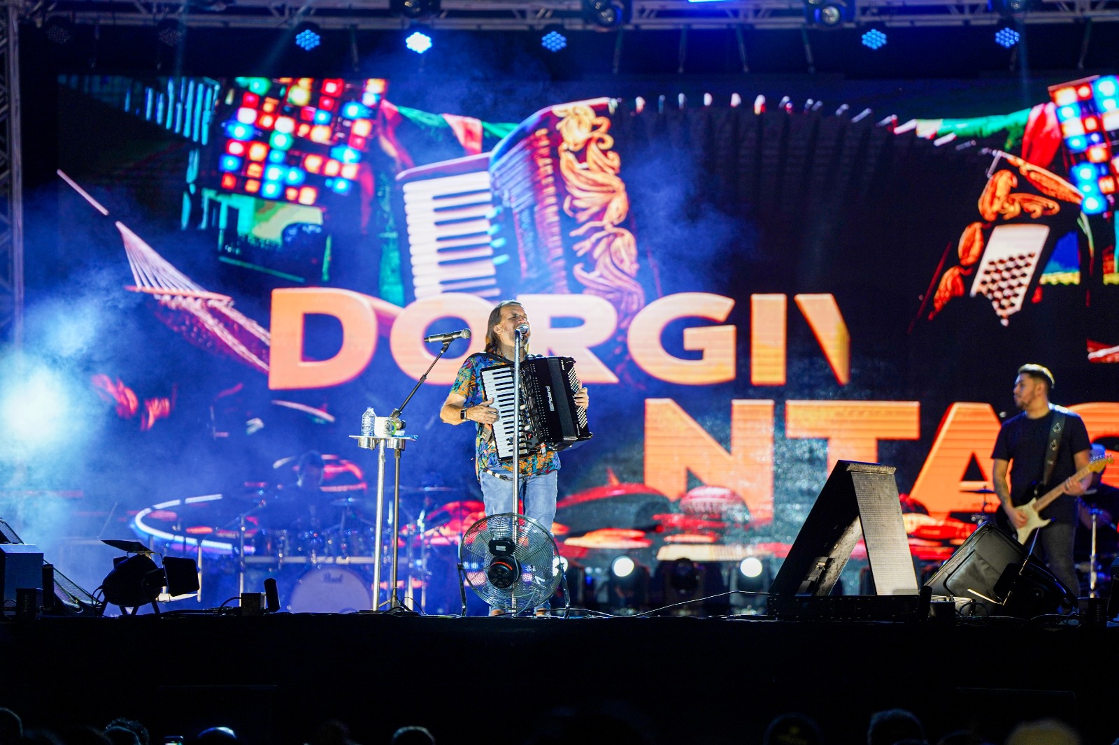 De chinelo rasteiro e sua sanfona característica, Dorgival Dantas subiu ao palco da quarta noite do Arraiá de LEM, nesta segunda-feira (1°), por volta das 22h30, e comandou um coro de 35 mil vozes, ao som de “Destá”, um dos seus maiores sucessos.