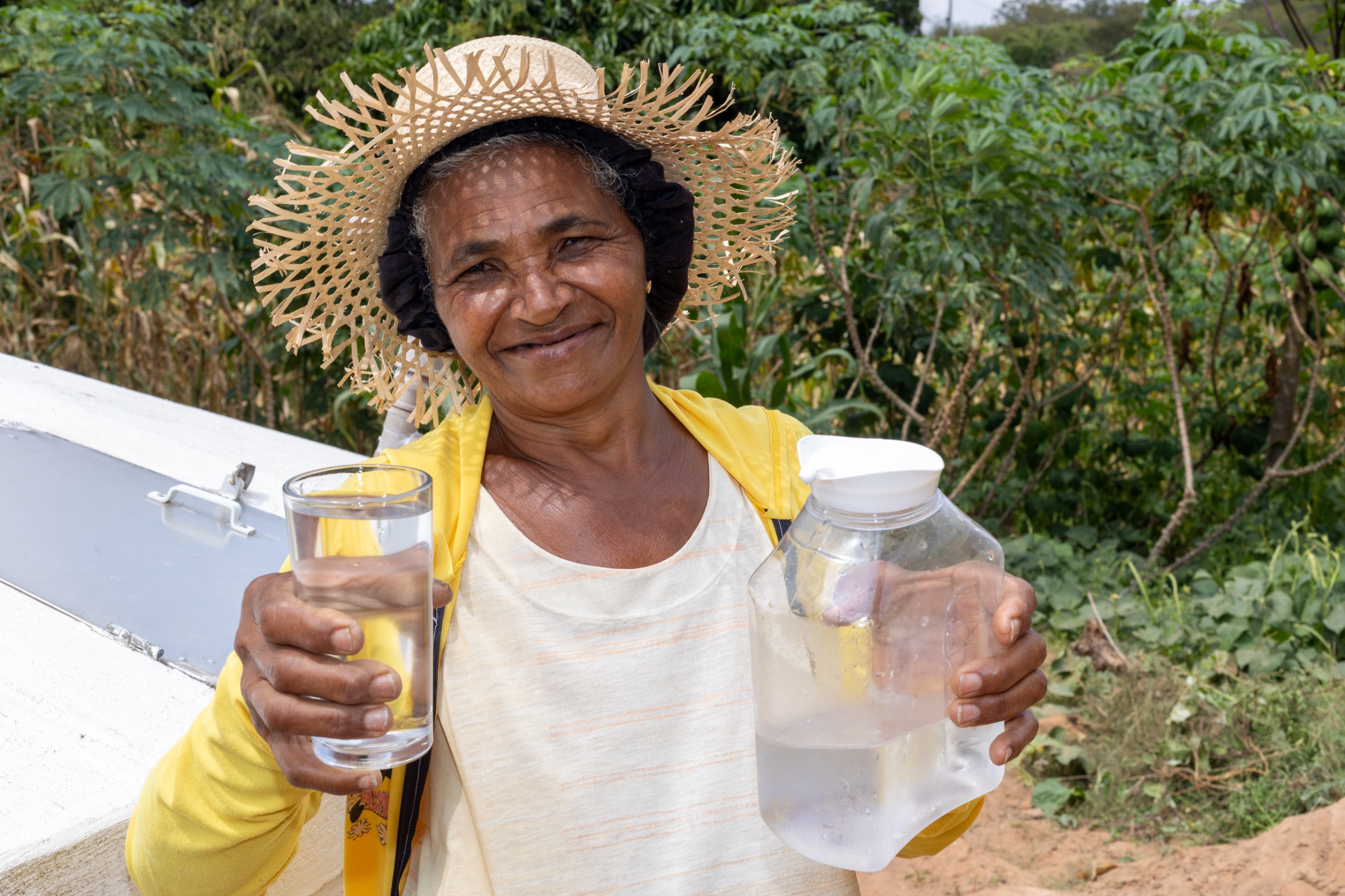 Para Maria José de Jesus, de 43 anos, a luta por água era constante e cansativa. “Já passei por muitas dificuldades para ter água”, lembra. “Eu andava até 2 quilômetros para buscar um pote de água em uma fonte. Às vezes, levava as crianças comigo, mas elas ficavam muito cansadas. Outras vezes, deixava o mais velho tomando conta dos irmãos, mas não podia demorar, porque a fila era grande e, muitas vezes, eu voltava pra casa sem água. Até grávida, com o barrigão, eu ia buscar água. A gente ia de noite ou de madrugada, porque de dia tinha que trabalhar na roça. Hoje, com a cisterna, a chuva nos dá a água, e a gente tem tudo isso na porta de casa”.