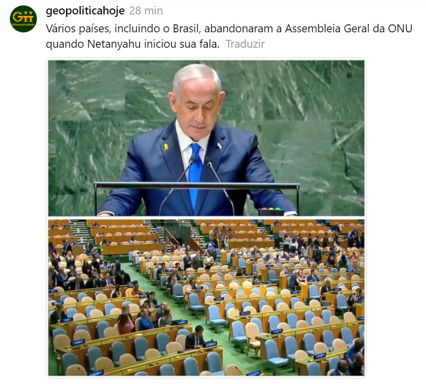 Ataque aconteceu após discurso do primeiro-ministro israelense, Benjamin Netanyahu, na Assembleia Geral da ONU, nesta sexta-feira (27).