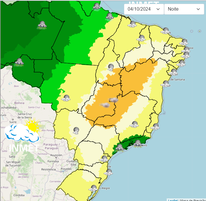 Enquanto a chuva se aproxima pelo Oeste e, pelo leste, originada por uma grande frente fria, uma enorme mancha de seca e calor permanece estacionada sobre o Centro-Nordeste, alcançando inclusive o Oeste da Bahia.