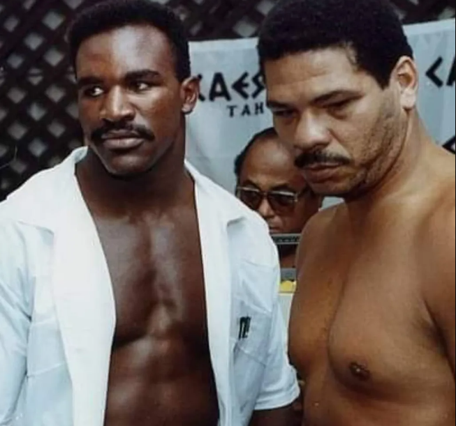 Maguila com Evander Hollyfield, outro grande campeão.