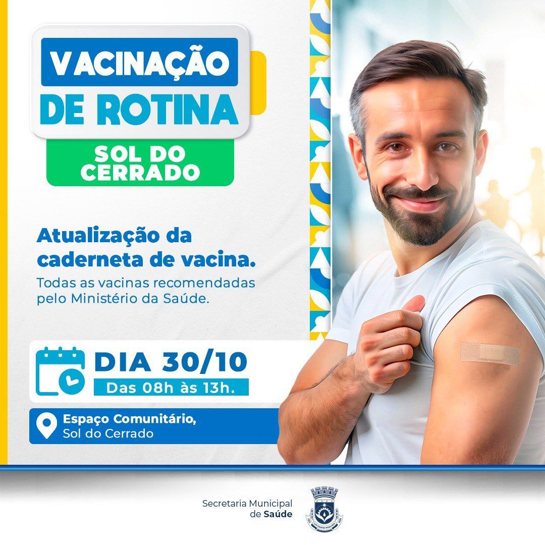 Os moradores das comunidades de Vista Alegre e Sol do Cerrado, em Luís Eduardo Magalhães, serão beneficiados com uma ação de vacinação nos dias 29 e 30 de outubro, das 8h às 13h, com a oferta de todas as vacinas recomendadas pelo Ministério da Saúde, incluindo a do covid-19.