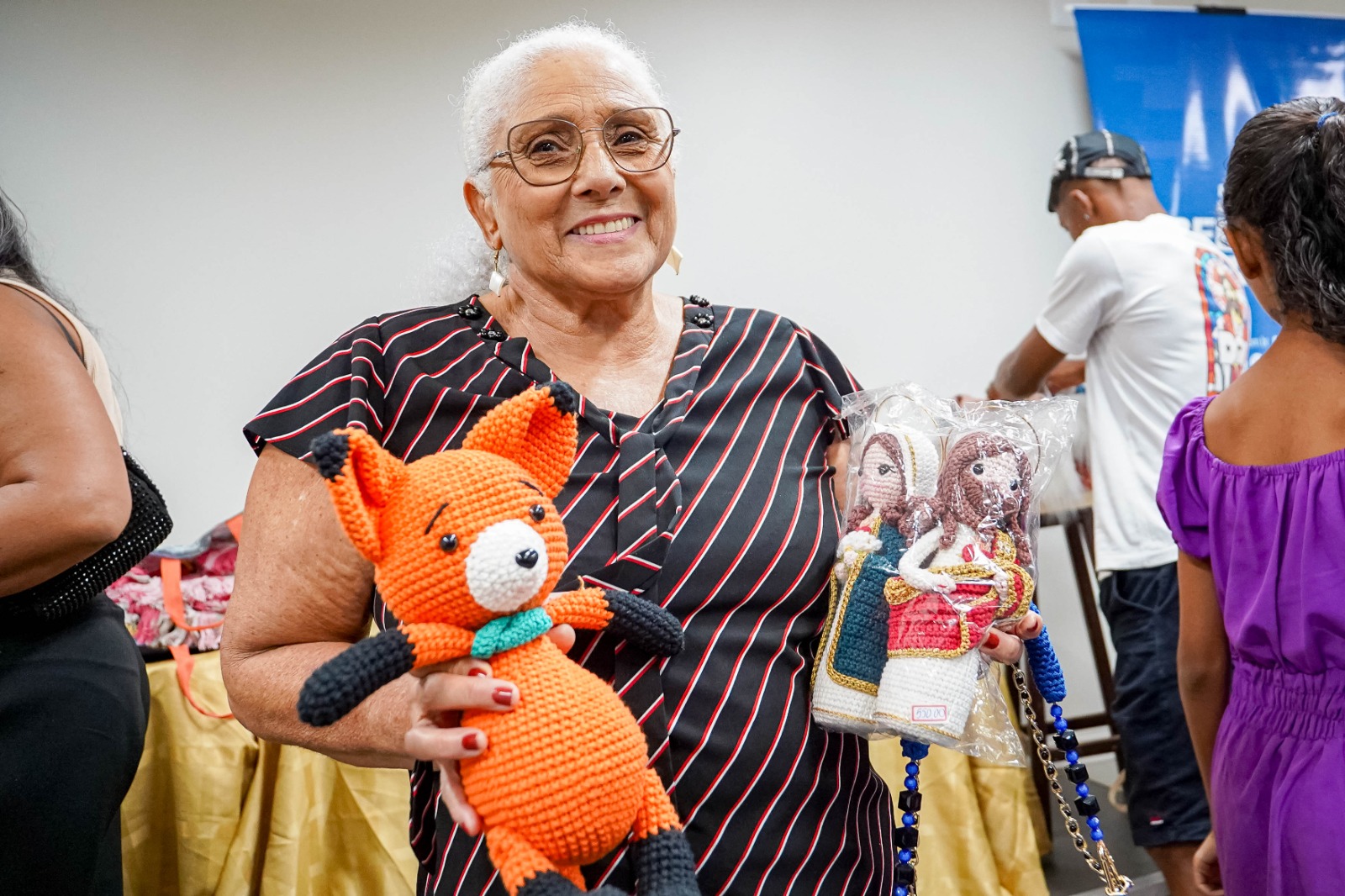 A mineira Margot, de 70 anos, falou sobre a sua profissão. “Há 20 anos eu vivo exclusivamente de artesanato e pra mim é uma realização transformar fios em arte, e ser independente financeiramente através dessee ofício”, declarou.