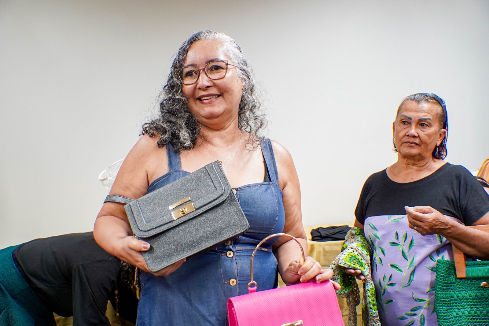 Norma Coelho, baiana de Pindobaçu, que há 11 anos escolheu LEM para viver, e aqui produz bolsas, contou como é viver exclusivamente de artesanato. “Nenhuma bolsa artesanal é igual. Ela parece de fábrica, e muitas vezes as pessoas não acreditam, mas ela é confeccionada passo a passo, manualmente, e eu costumo imaginar que mulher vai usar aquela bolsa, então viver de artesanato é isso: viver de emoção”, disse.