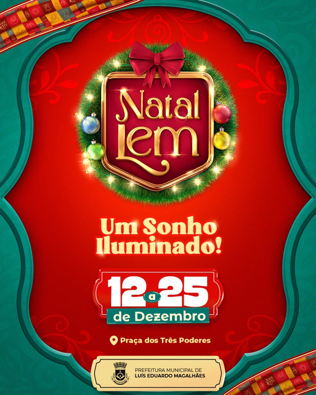 O Natal mais iluminado do Oeste da Bahia está de volta, de 12 a 25 de dezembro, na Praça dos Três Poderes, em Luís Eduardo Magalhães, com uma programação voltada para toda a família, em uma área de 20 mil metros quadrados.