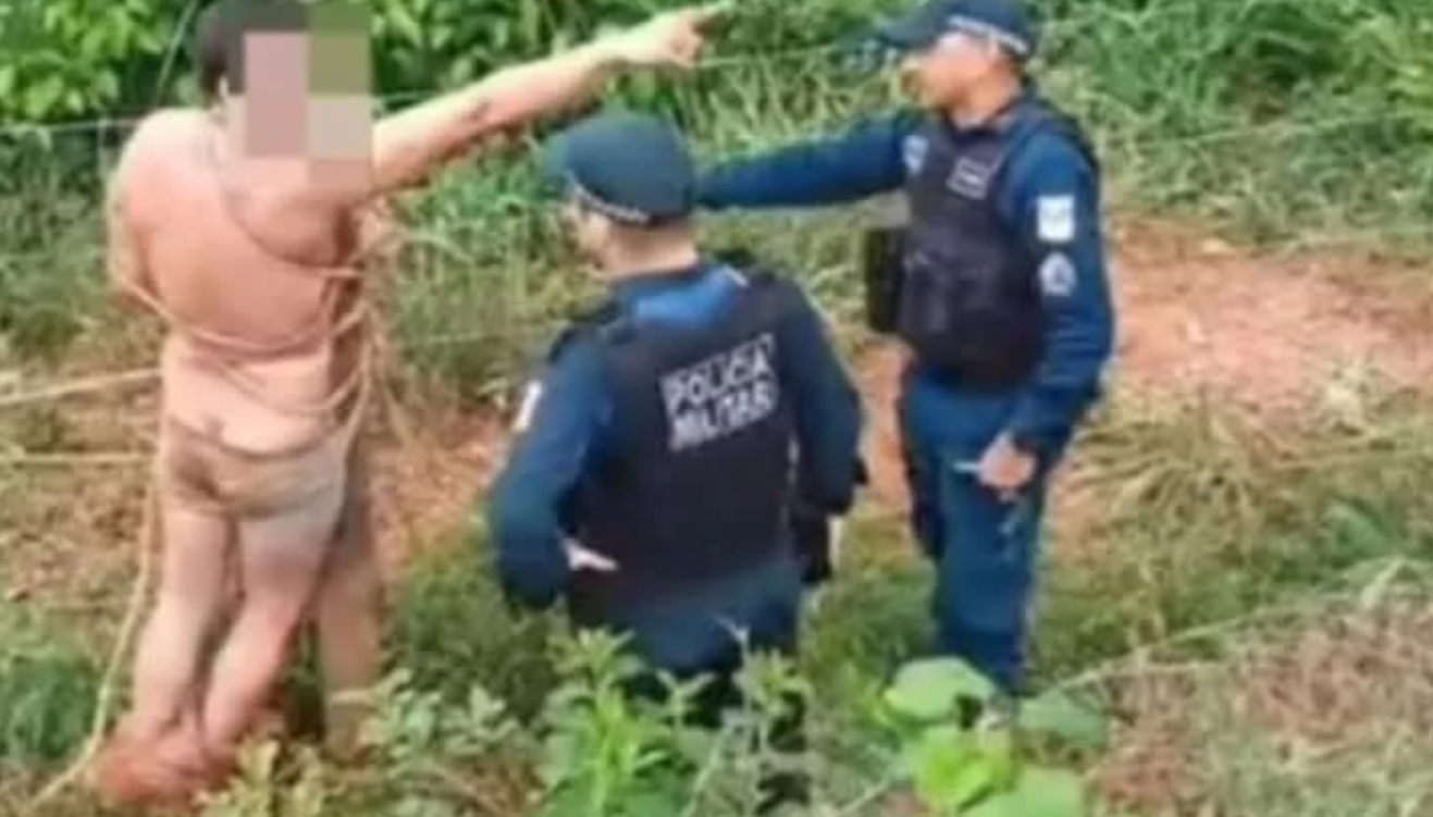 No Pará, policial civil abusa de operários e é amarrado seminu em uma cerca.