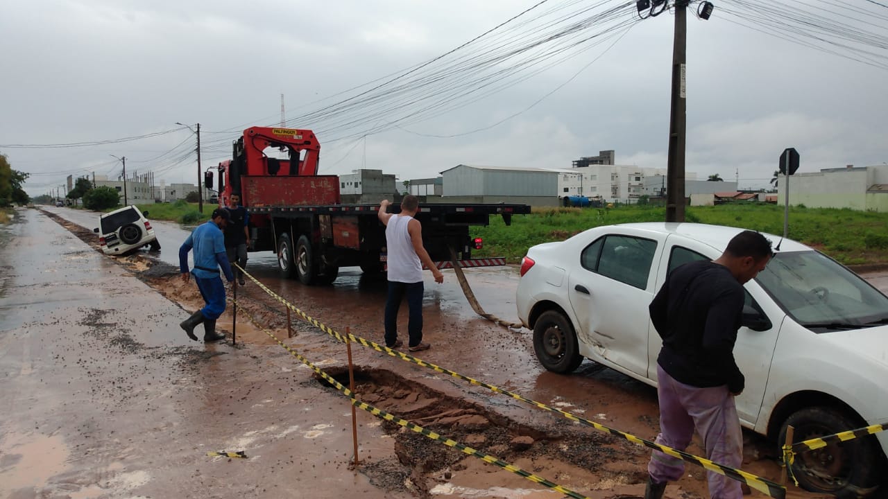 Após as chuvas da madrugada desta terça-feira o trecho em obras registrou alguns acidentes que geraram danos materiais para os motoristas. Dois veículos foram retirados após ficarem presos nas valas.